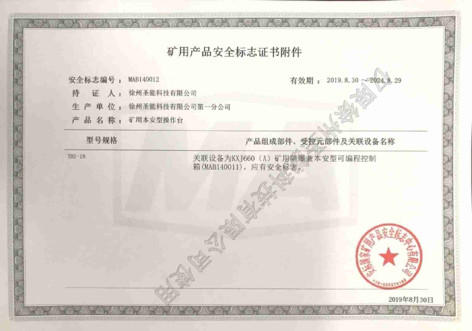 TH1-18礦用本安型操作臺(tái)煤安證附件