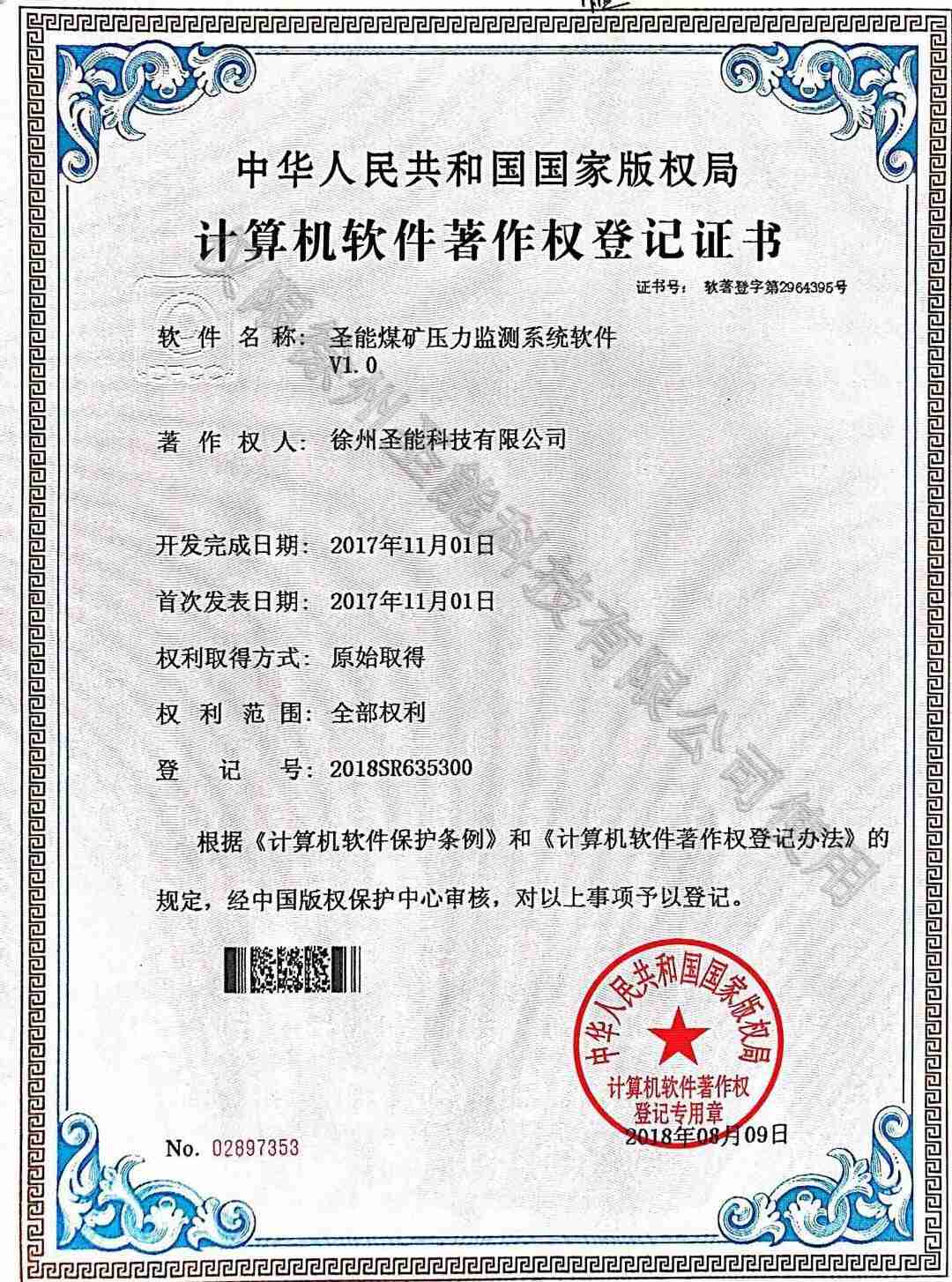 煤礦壓力監(jiān)測系統(tǒng)認定證書