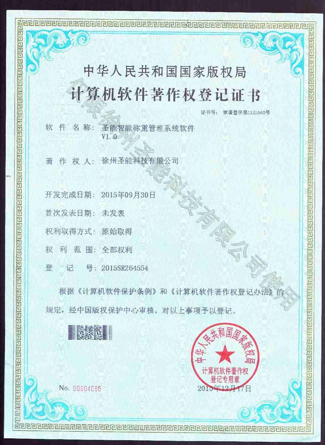智能稱重管理系統(tǒng)軟件軟件著作權(quán)