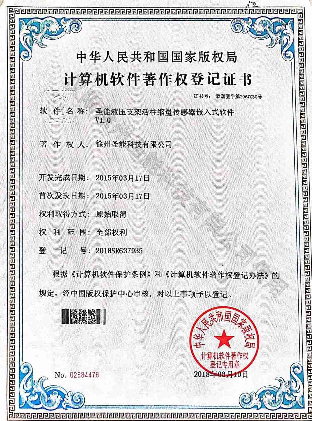 液壓支架活柱縮量傳感器嵌入式軟件軟件著作權