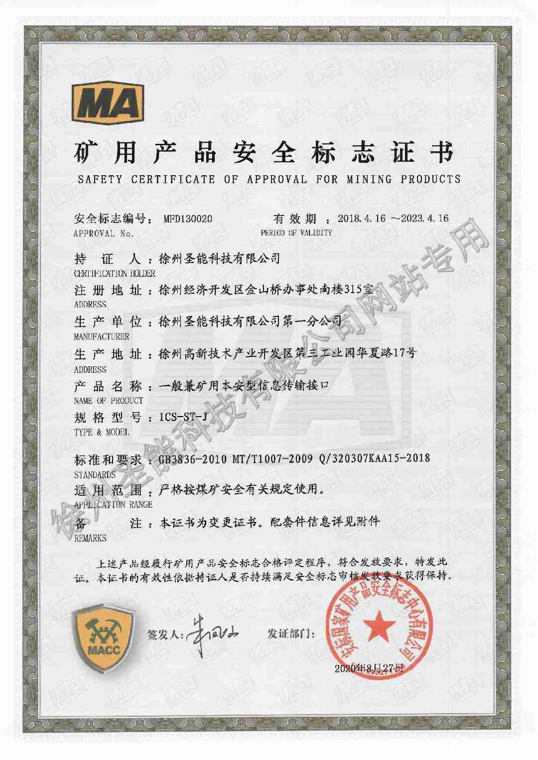 ICS-ST-J一般兼礦用本安型信息傳輸接口防爆證