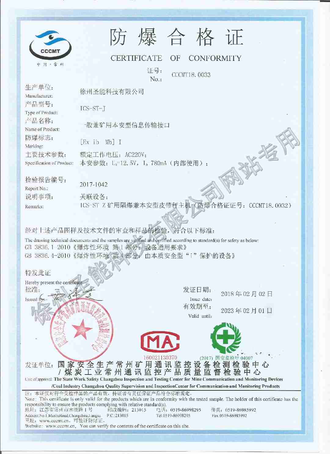 ICS-ST-J一般兼礦用本安型信息傳輸接口防爆證