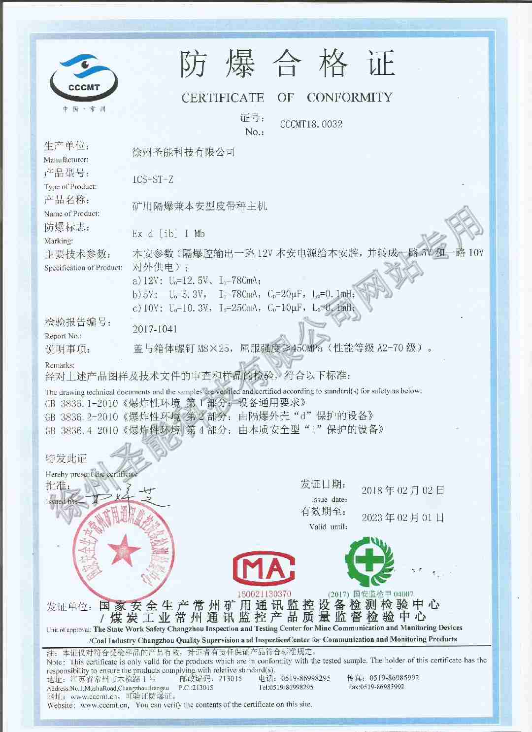 ICS-ST-Z礦用隔爆兼本安型皮帶秤主機防爆證