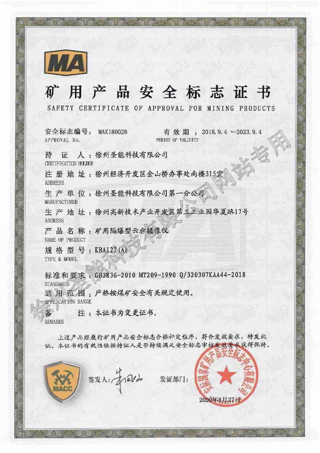 KBA127(A)礦用隔爆型云臺(tái)攝像儀煤安證