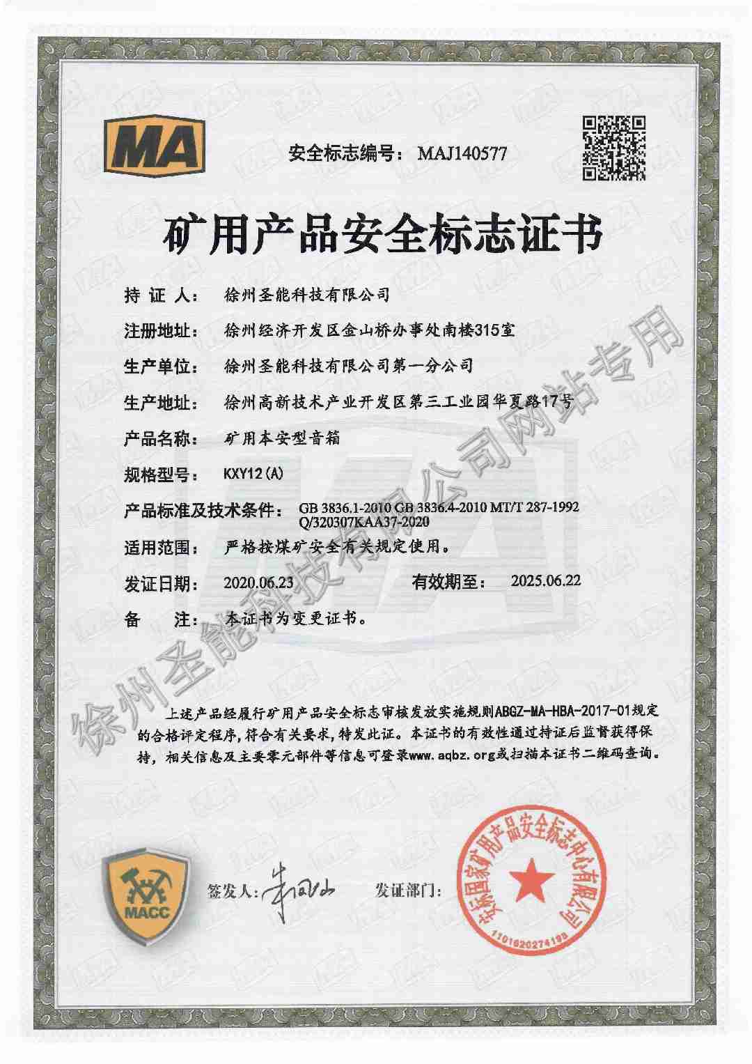 KXY12(A)礦用本安型音箱煤安證