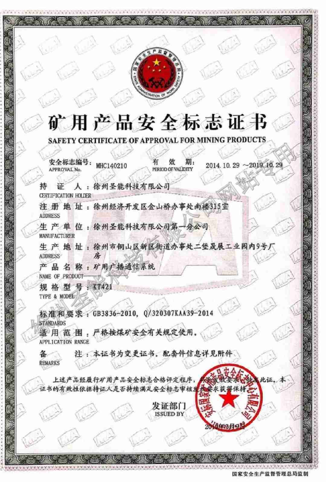 KT421礦用廣播通信系統(tǒng)煤安證