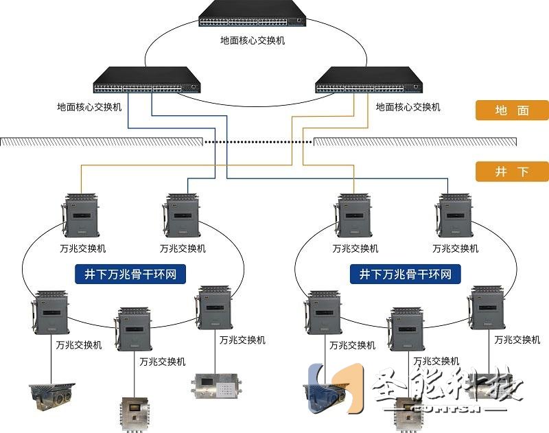 2.本安型設(shè)備部署:通過(guò)礦用隔爆兼本安型交換機(jī)、礦用本安型網(wǎng)關(guān)等專(zhuān)用設(shè)備,既滿(mǎn)足井下防爆要求,又實(shí)現(xiàn)萬(wàn)兆級(jí)帶寬傳輸;
