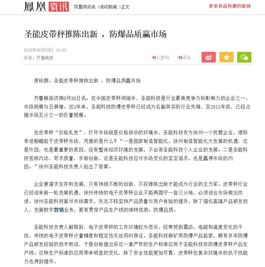 在中國皮帶秤領域中,圣能科技是行業(yè)最具競爭力和影響力的企業(yè)之一,市場規(guī)模與日俱增。近3年來,圣能科技防爆皮帶秤已經(jīng)成為名副其實的行業(yè)先鋒,至2015年底,已經(jīng)占據(jù)市場五分之一的巨量規(guī)模。