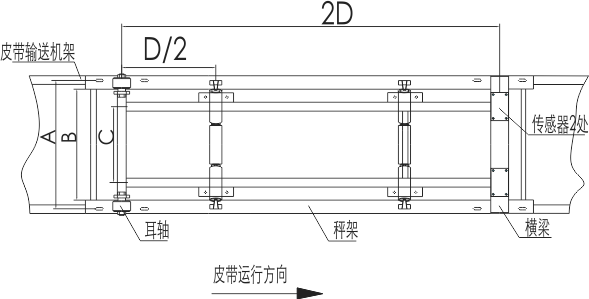 ICS-17B型稱重橋架在單杠桿上裝有2組托輥,采用兩只拉式傳感器中間支承,外側(cè)支承采用無磨擦耳軸支點(diǎn)。有效克服偏載對精度的影響,這種封閉裝置可以防震、防潮、防腐及防止物料堆積,因而在惡劣的環(huán)境中不發(fā)生使用刀口裝置和軸承裝置帶來的問題。