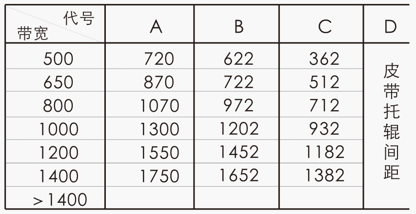 一般用于較長的輸送皮帶上,D一般為1200mm,安裝的輸送機(jī)傾角應(yīng)≤17°;
