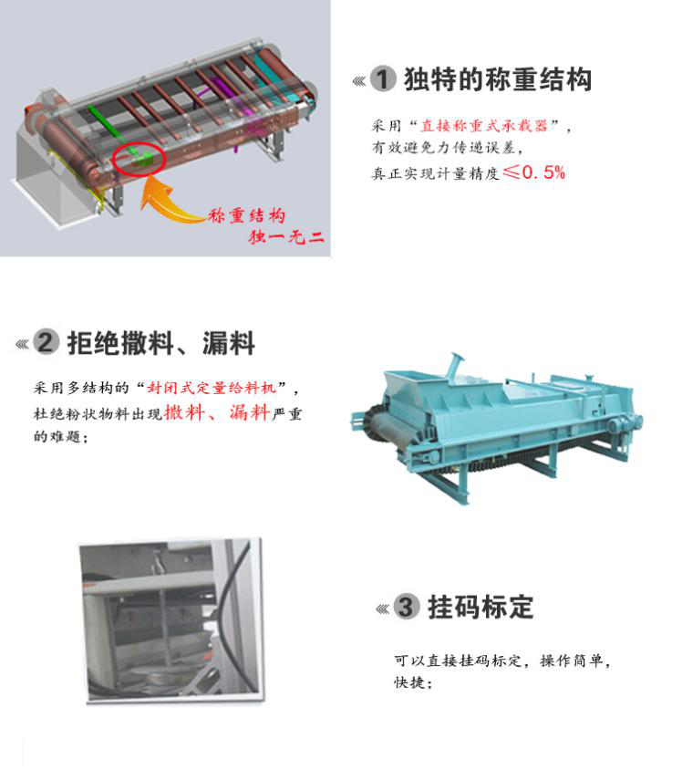 封閉式定量給料機(jī)主要由秤架、整體防塵外殼、輸送裙邊皮帶、減速機(jī)、電機(jī)、傳感器、編碼器,糾偏裝置內(nèi)外清掃器和相關(guān)的稱重儀表所構(gòu)成。
