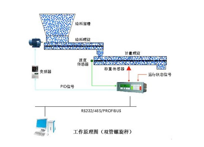 雙管螺旋稱重給料機是一款適宜輸送粉狀、顆粒狀或小塊物料的動態(tài)計量衡器,兩層結(jié)構(gòu),上層結(jié)構(gòu)主要負責穩(wěn)流和輸送,下層則主要負責動態(tài)計量,穩(wěn)流效果較好而且節(jié)省空間。